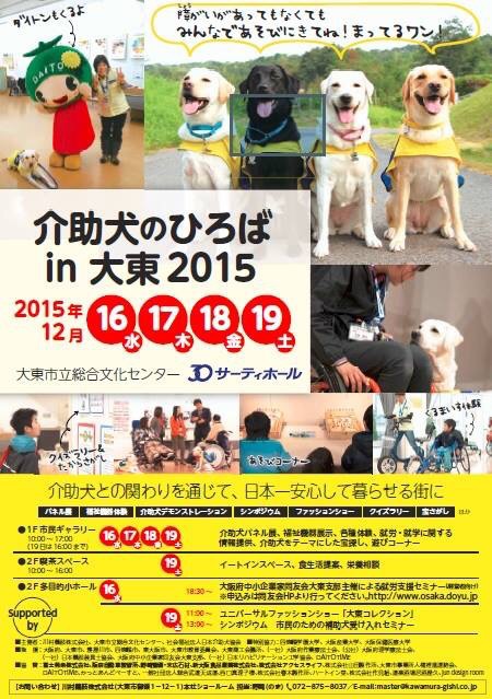 ※市民対象の啓発イベント『介助犬のひろばin大東2015』を大東市立総合文化センター、社会福祉法人日本介助犬協会とともに川村義肢株式会社が主催します。 2013年より開催している介助犬のPRを通じたハンディキャップがあっても暮らしやすい街づくりを考えるこちらのイベント。